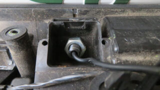 リアカメラ/バックカメラは中華製のものを使っている。固定方法はカメラケース本体のネジをナットで締め付ける方法だ。スプリングワッシャなどは付属していなかったので、振動で緩まないようにホットボンドで固めておいたのだが、殆ど役に立たなかった。相手...