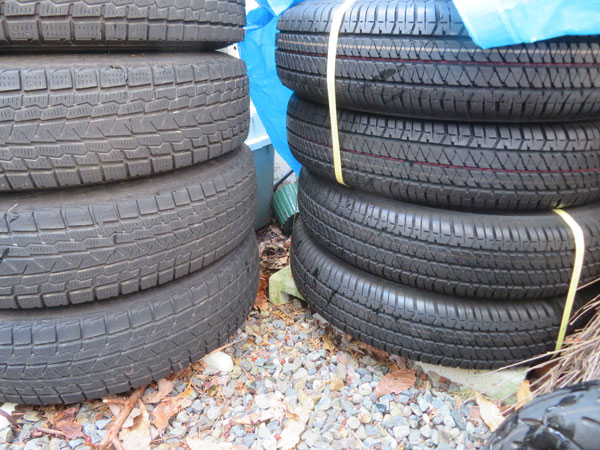 新品タイヤ(非装着)+ホイール付きスタッドレスタイヤ(減っている)を付ける。