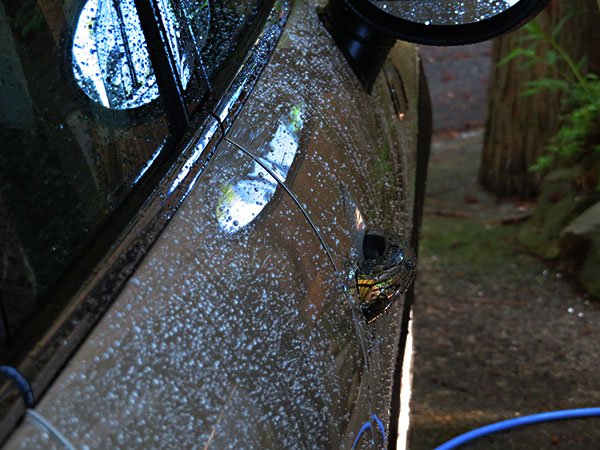 なので、まずその泥汚れが余り堆積しないうちに落として、落ちた泥の固まりを流し、それから普通に洗車をした。