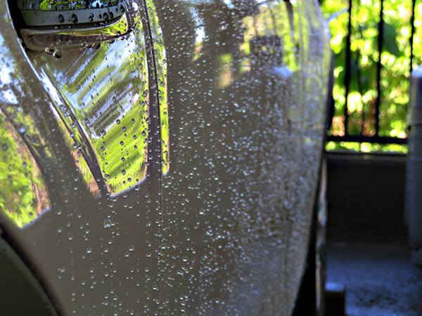 ワックスのテストなどでサイドパネルに水をかけているものがあるが、垂直やそれに近い面なら水をはじく。