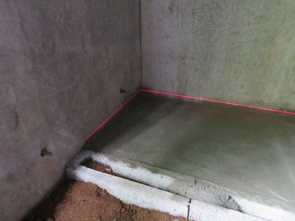 水平面を見ることはレーザ墨出し器を使えば良いので簡単だし、その場所に木の棒を当てればモルタルの高い部分と低い部分が分かる。