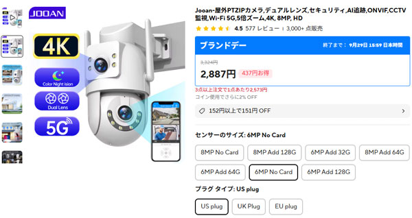 2カメラでPTZでこの価格なのだから、いったい原価はいくらなんだという感じ。