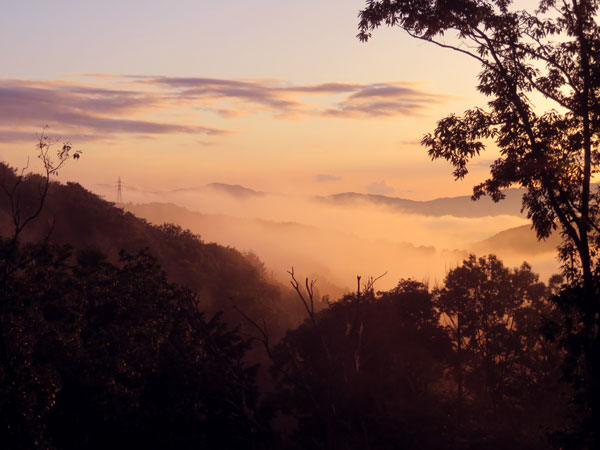 山の谷間には雲というか霧というかが立ちこめ、雲海が出来ている。