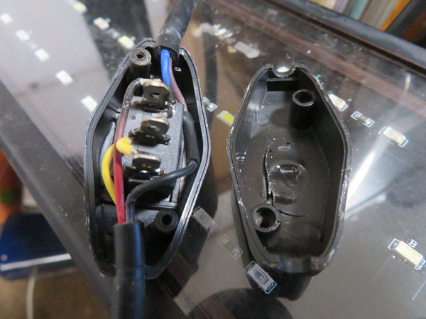 片方をONにすると中央部だけが点灯、反対側にスイッチを倒せば全点灯になるので、LED基板上にはダイオードが1個乗っている。