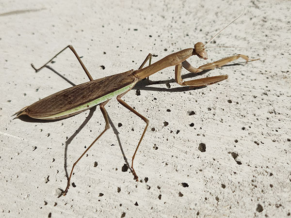 なので、こんなに近寄って写真を撮るのは相当な努力が必要だったわけだが、茶色いカマキリは(秋になって弱っているから)動かないに違いないと思い込んでいた。