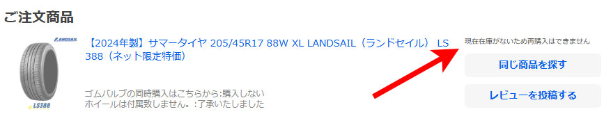 某タイヤ屋に注文(注文自体はヤフーショップ店)したのだが、在庫2本のみ…