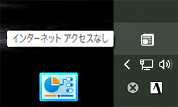 タスクバーのPEOPLEの上にマウスポインタを持っていくと、インターネットアクセス無しと表示される。