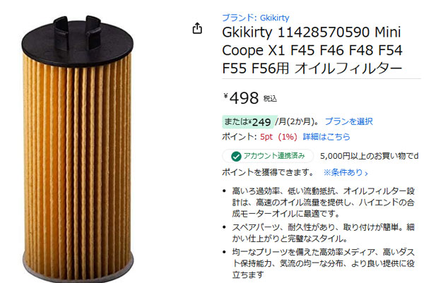 オイルは半年前に買ったので大丈夫、フィルタはMANNのものを買っておく。