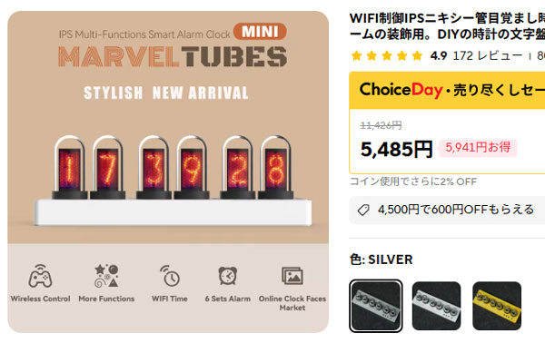 先日買ったWiFi接続温度計に時計が付いていて、時計付きも良いなと思った。