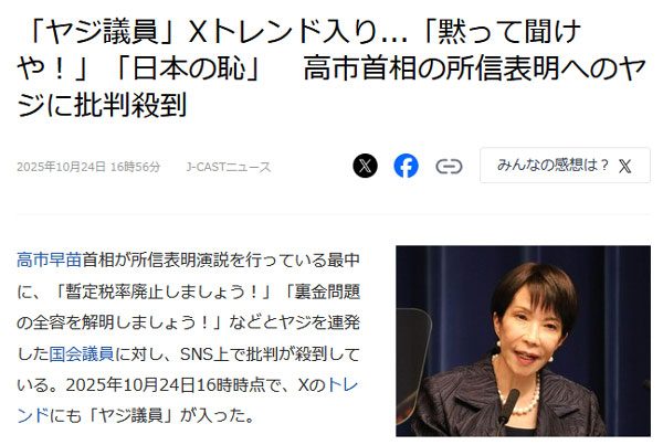 北村議員も触れているが、報道各社も反高市スタイルを貫く。