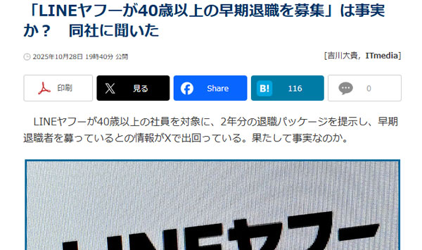 LINEヤフーはネクストキャリア支援制度と言う名の退職勧告的な動きをしている。