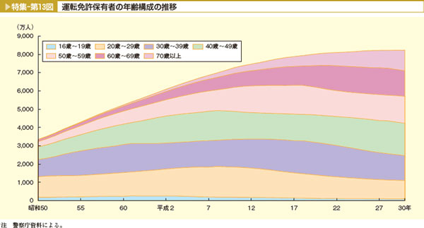 内閣府のデータでは40歳以下の免許保有者数が減っているが、人口減少分もある。