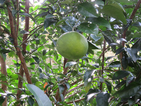 たいして実のならなかった柑橘系の木だが、今年はそれでも10個位の実が付いている。