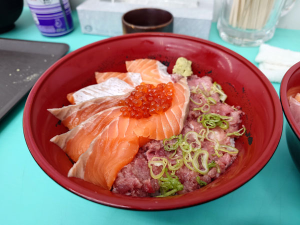 マグロとサーモン丼が千円、写真のものが1,200円だったかな。