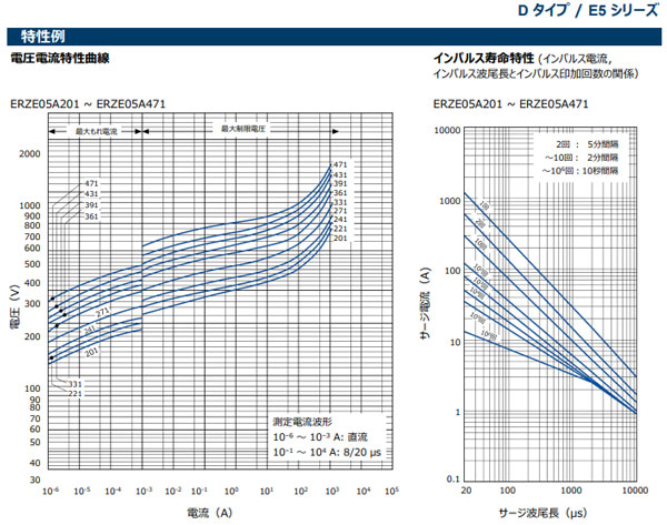 なおバリスタは許容以上のサージを吸収するとだんだん壊れていくので、使い捨てとは言わないがそんな特性を持っている。