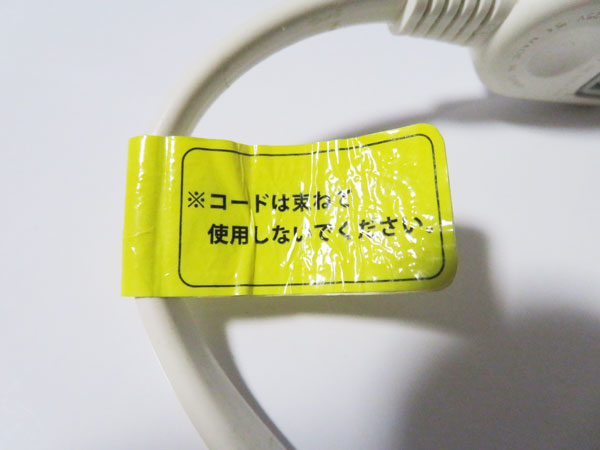 そしてこんなに短いケーブルにも、束ねて使用してはいけないと書かれたタグが付けられている。