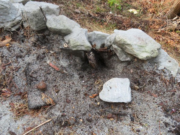 土留めの塀を作ったところの上の部分、タヌキが穴を掘って砂を散らかしてしまう。
