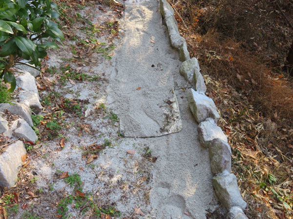 夏場は草が生えていて作業しにくいので、草の枯れたこの時期に砂を撒いた。