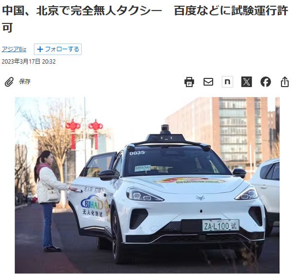 現在では米国でも中国でも、無人タクシーが普通に運行されている。
