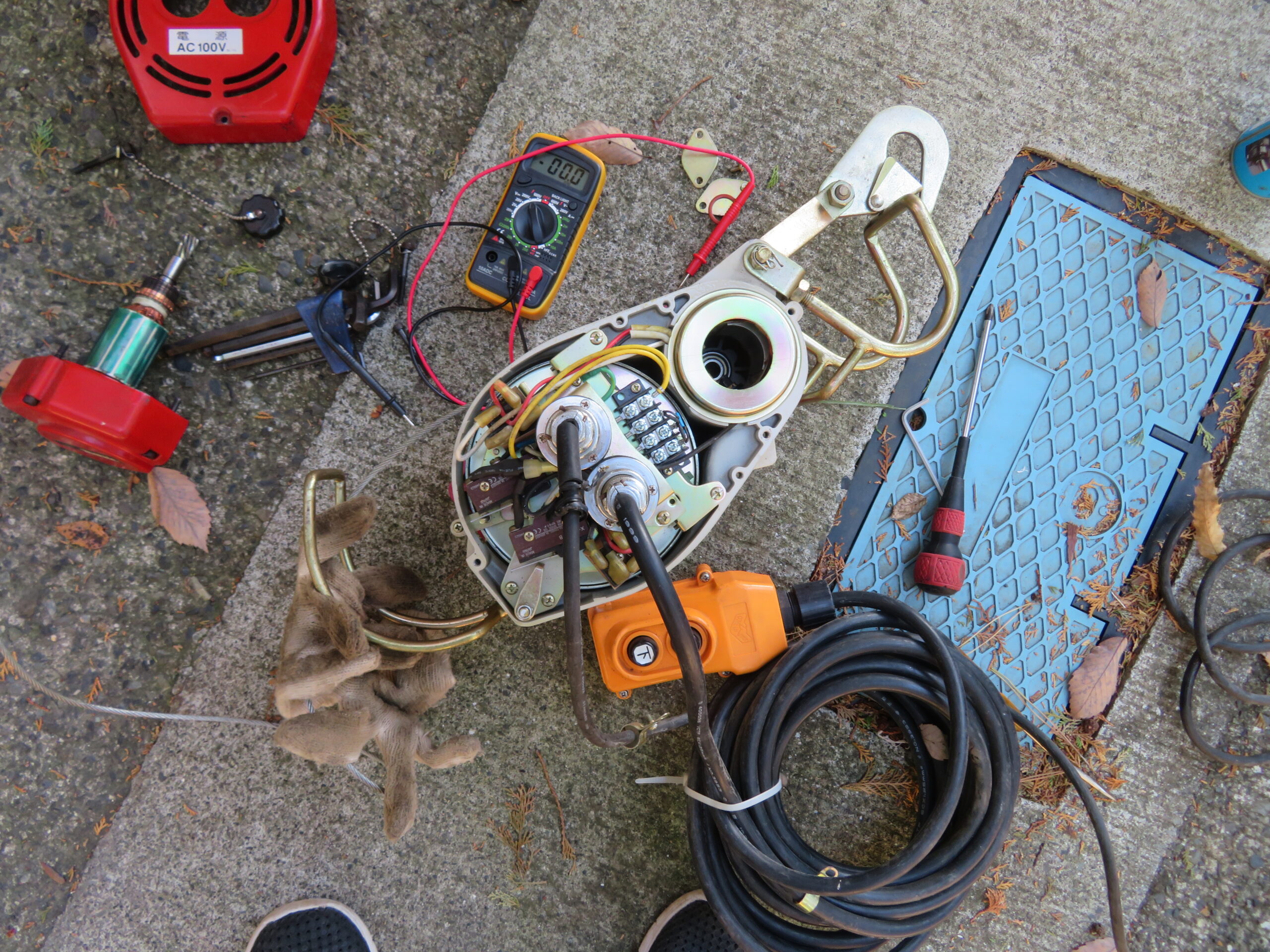 このホイストはDCモータで動作していて、極性を反転させる事でモータの回転方向を変更している。