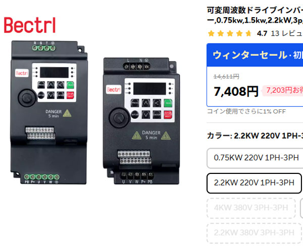 F&Fでは2000年頃に米国から輸入したプロテインスキマーを60Hz駆動してみたくて、周波数可変のインバータを入手した。