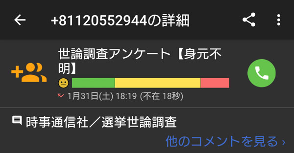 次にかかってきたのは時事通信からで、1月31日の18時19分である。