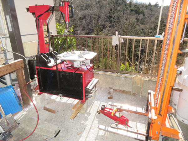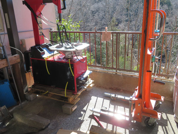 この後タイヤチェンジャーを持ち上げて、パレットを引き抜いた。