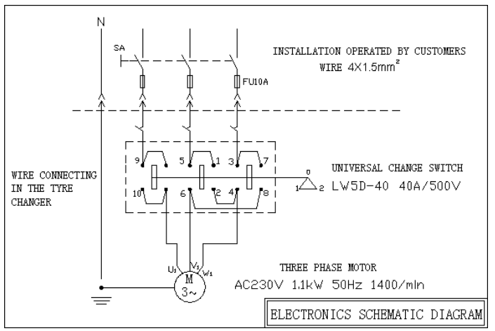 タイヤチェンジャーにはデカいロータリースイッチみたいなものが付いていて、これで3相のうちの2相を入れ替え、モータの回転方向を変えている。