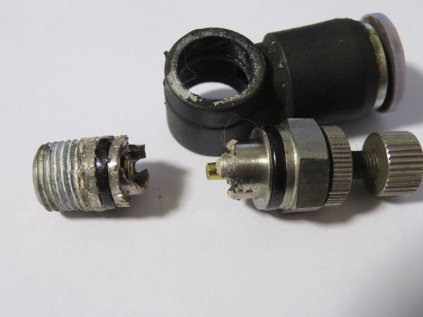 スピードコントローラとは流量可変バルブなのだが、そこから少しエアが漏れていた。
