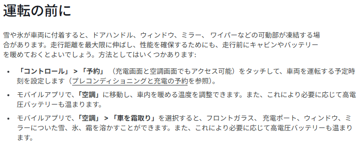 テスラは「出発の30分前に空調機能をONにする」事を推奨している。