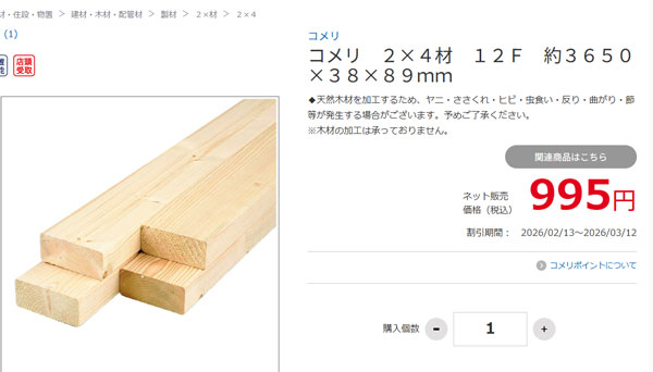 コメリに聞くと、ネットの方が安いものはネットで注文し、店舗受け取りにした方が良いですよと言われた。