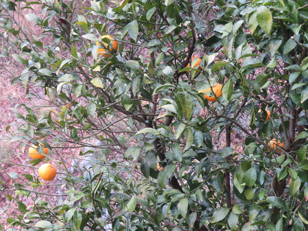 別荘地内の他の家に植えられているミカンの木も、葉は全て茶色になっている。