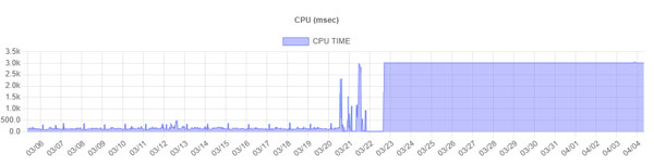 しかしCPU制限は実施されていないので、さくらインターネット側はCPU利用率の異常が検出出来ていないことになる。