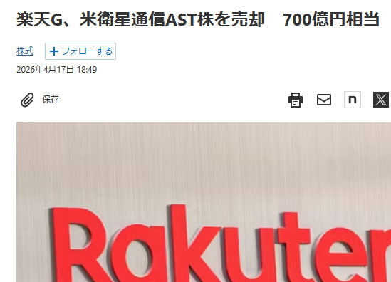 楽天はAST SpaceMobileの株を一部売却した。