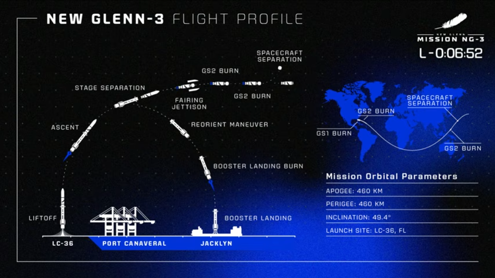打ち上げは米国BlueOrigin社のNEW GLEN-3で、一段目ロケットの再使用を行う。