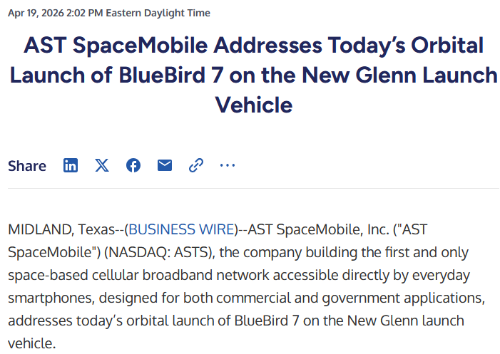 ASTは2025年から2026年にかけて45機から60基の衛星を軌道投入するとしていた。