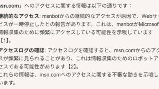 コラム search.msn.comとは何なのか? 2010年頃から問題視されているものにsearch.msn.comからのアクセスがある。UA(UserAgent)を見ると普通のブラウザで、検索用のロボットとはなっていない。ちなみにbingの検索用のロボットはUAにbingbotが入ってい... 2026.04.09 コラム