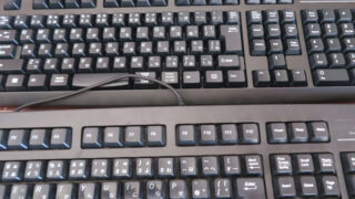このキーボードはPCに付属してきたもので、ストロークも適度で扱いやすいものだ。PCの付属品なので高級なものではなく、これで交換は2度目になる。最初のものは印刷が落ちてしまって、よく使うキーの文字が読みづらくなった。その時に交換したものは印字...