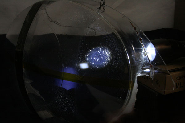 キズや不透明な部分があれば、そこで光が乱反射して光る。