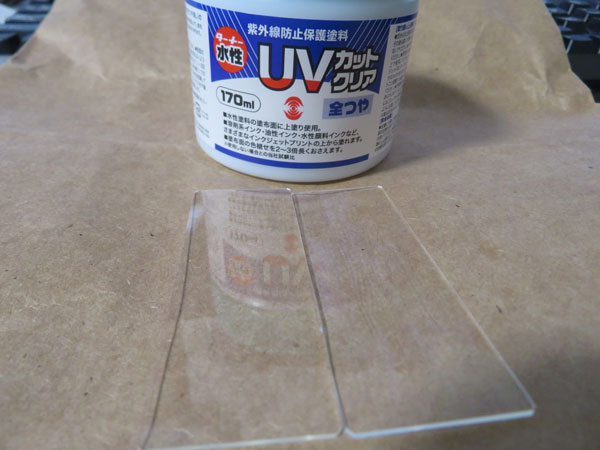 未処理部分にUVカットクリアを塗ったのが以下の写真だ。