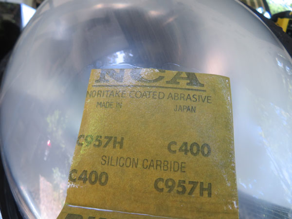 耐水ペーパを取り替えながら削り落とし、400番の耐水ペーパで削る。
