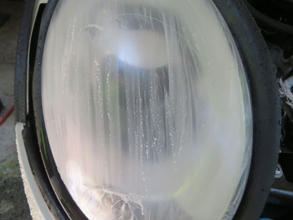 ヘッドライトには前回塗ったCCIのコート剤が残っていると思われる。