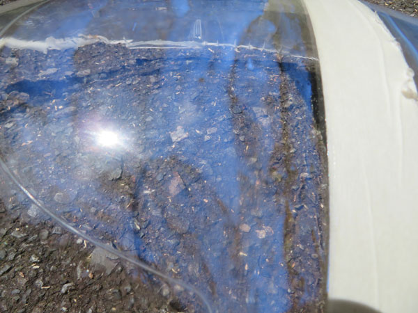 この実験用ヘッドライトカバーは、陽の良く当たる場所に放置して経過を観察した。