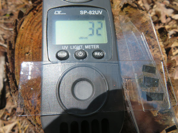 一部にはテープを貼っておいたのだが、遮光率が100%ではないので多少は紫外線が通ってくるかも。