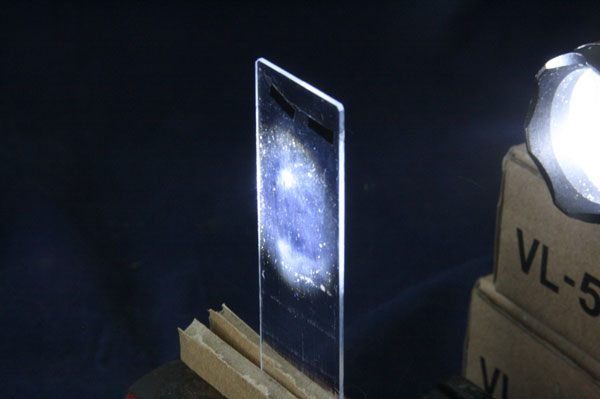 UVカットクリアを塗った面が不透明であれば、スライドグラスが明るく写る。