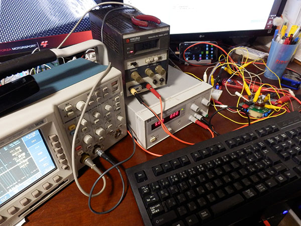 FETのゲートに付けたLEDは、その点灯の仕方で動作が分かる。