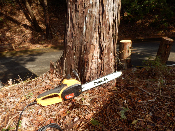 これ以上太い木になると、両側から切ったとしてもチェーンソーのガイドバーが届かない。