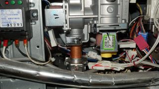 ノズルが少し曲がっているので、ネコが囓ったためである。