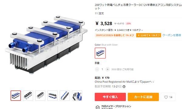 日々のこと Aliexpressのトラブルと返金 Aliexpressでは度々買い物をしているが、はじめてトラブルに遭遇した。販売店に悪意があったのかどうかは不明なのだが、悪意なくしてこのような問題は起きないと考えられる。何が起きたのか?購入したのはペルチェクーラだ。これを水槽水の加温用に... 2021.01.21 日々のこと